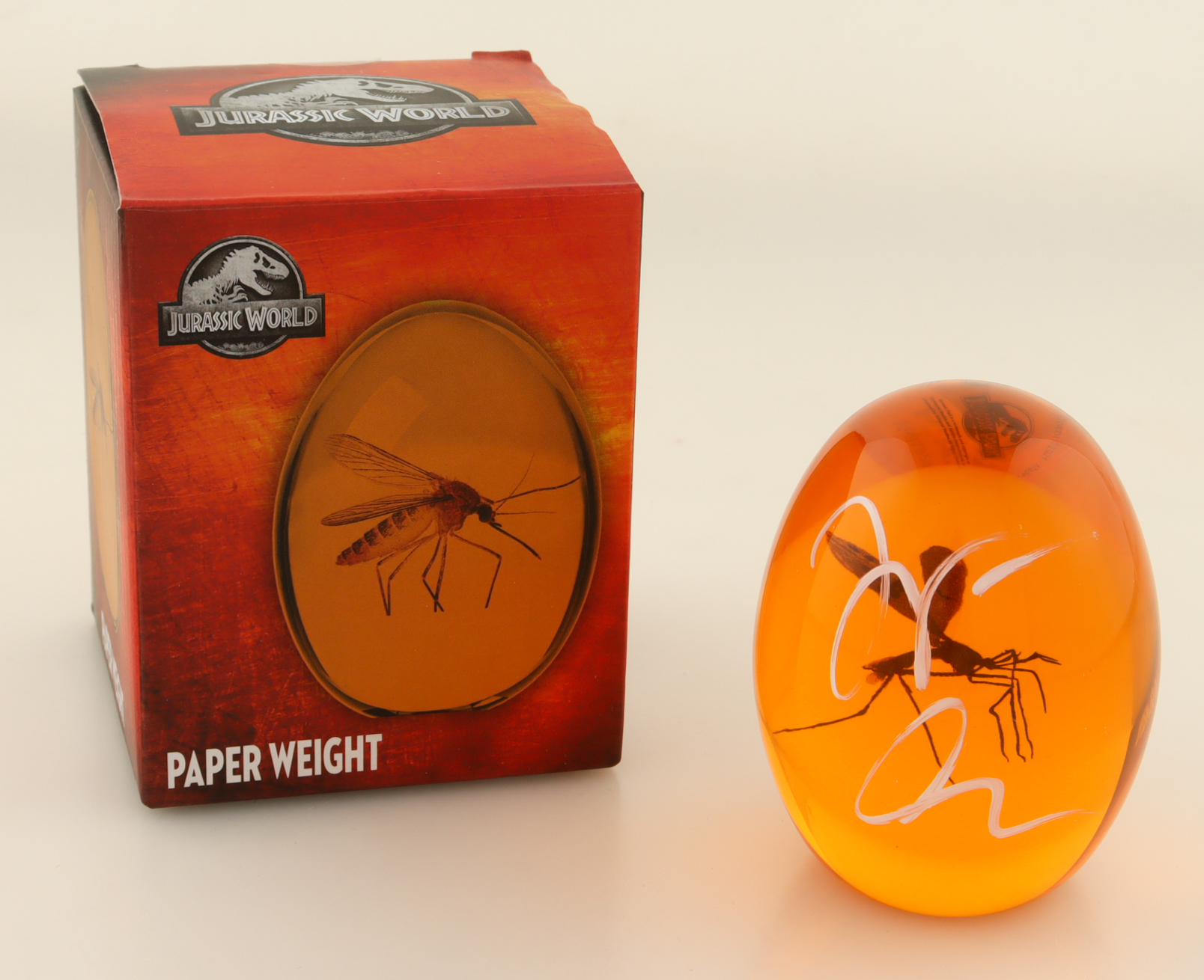 Jurassic Park Replica Prop Mosquito In Amber. Approximately 3" in height. Hand-signed by Jeff Goldblum.