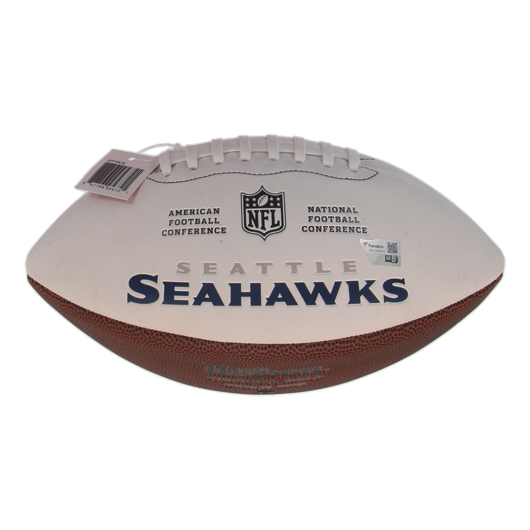 Wilson Seattle Seahawks Logo White Panel football. Hand-signed by Jaxon Smith-Njigba (Seattle Seahawks).