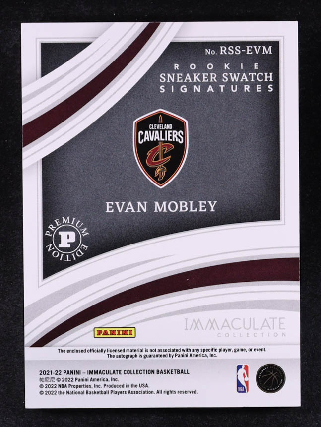 Evan Mobley 2021-22 Immaculate Collection Rookie Sneaker Swatch Signatures Premium Edition #3 #15/25 RC