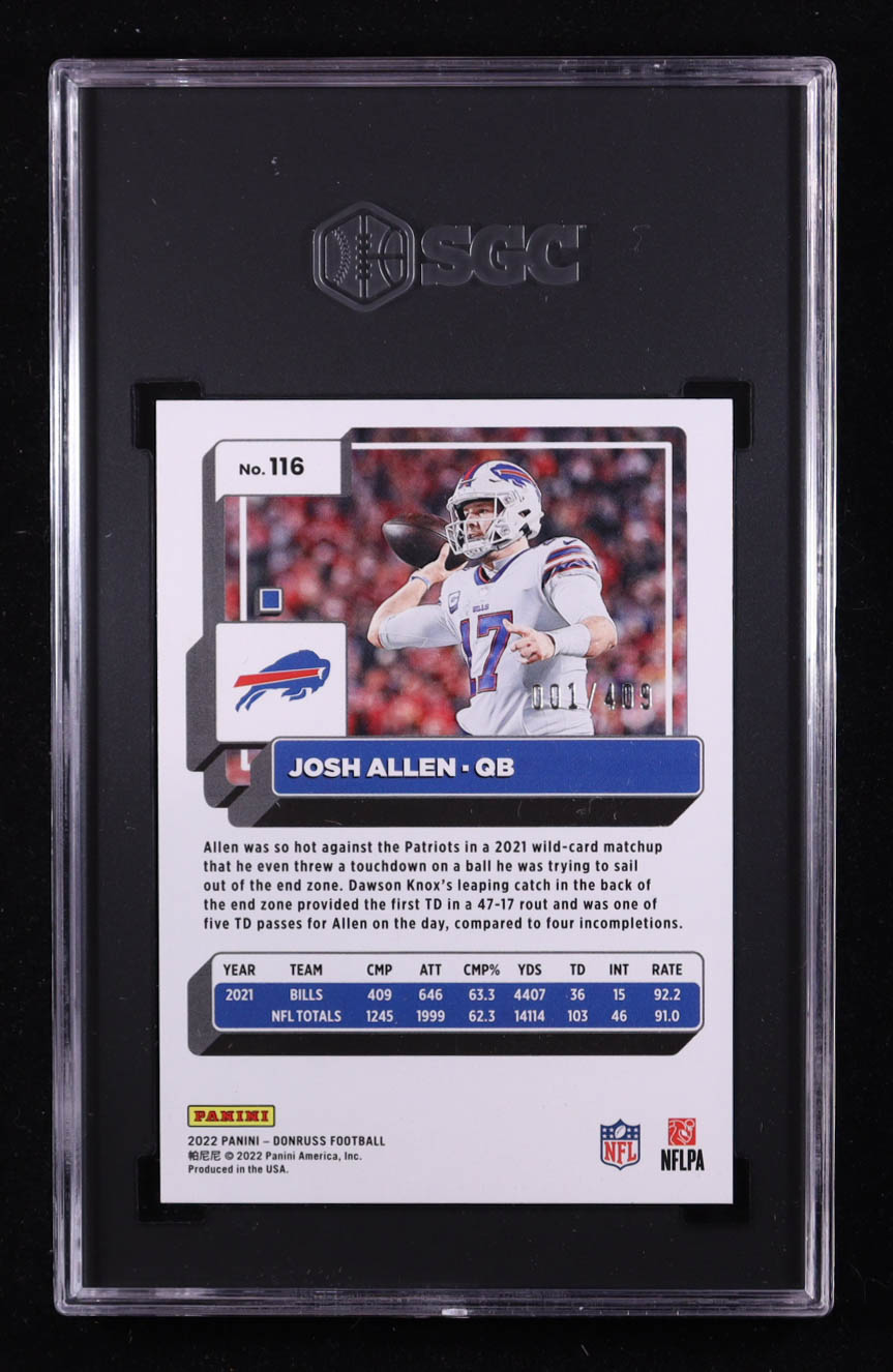 Josh Allen 2022 Donruss Season Stat Line #116 #001/409 (SGC 9.5)