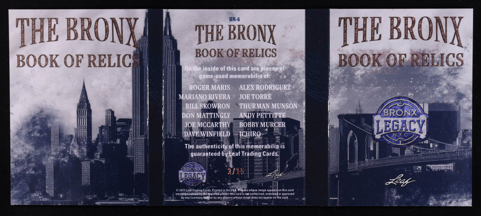 Roger Maris / Mariano Rivera / Bill Skowron / Don Mattingly / Joe McCarthy / Dave Winfield / Alex Rodriguez 2025 Leaf A Bronx Legacy The Bronx Book of Relics Spectrum Bronze Holofoil #BR6 #3/15