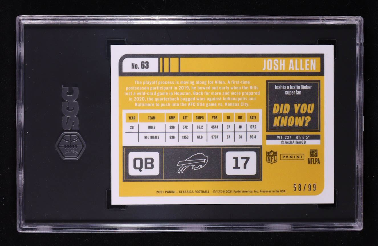 Josh Allen 2021 Classics Premium Edition Timeless Tributes H2 Gold #63 #58/99 (SGC 9.5)