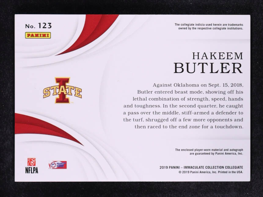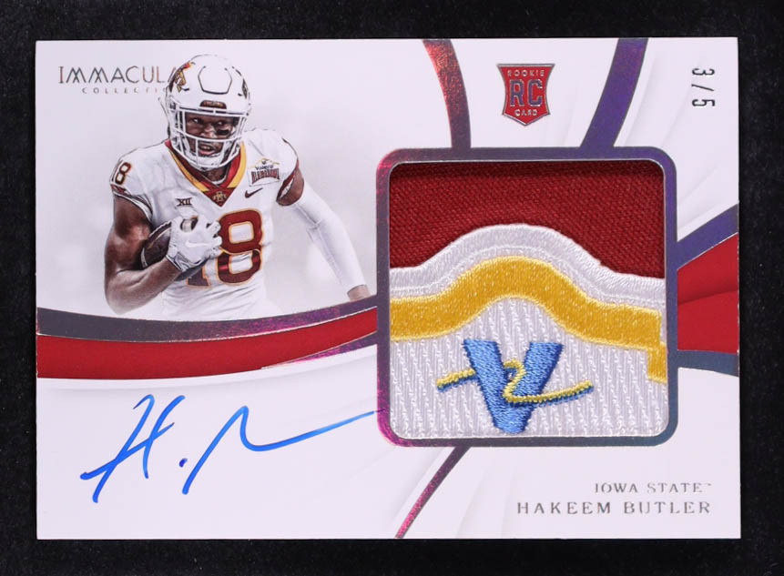 Hakeem Butler 2019 Immaculate Collection Collegiate Premium Patches Rookie Autographs Bowl Logo #123 #3/5 RC