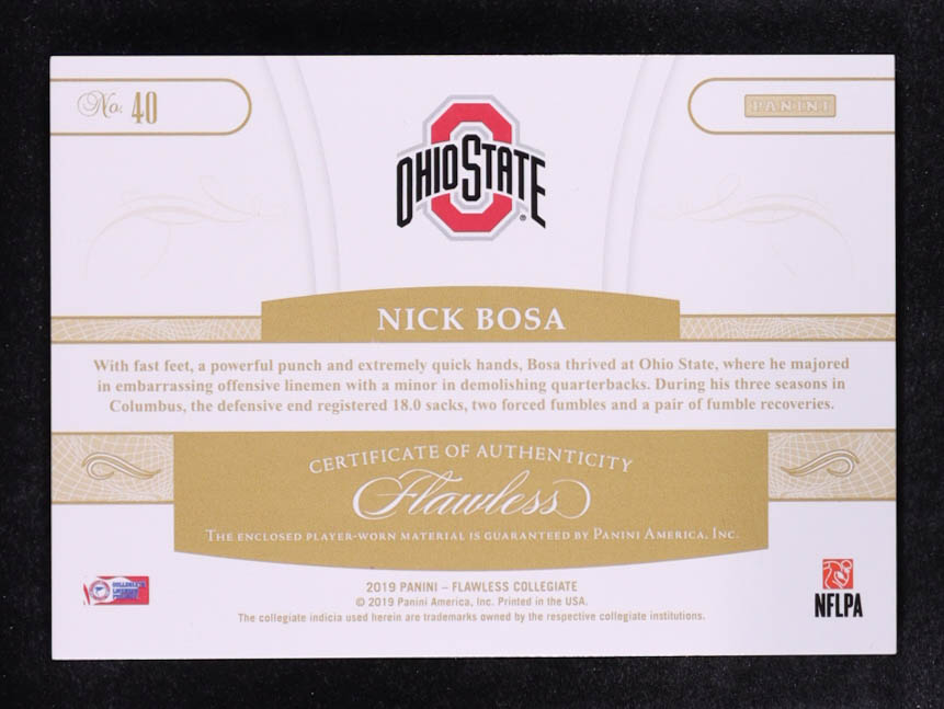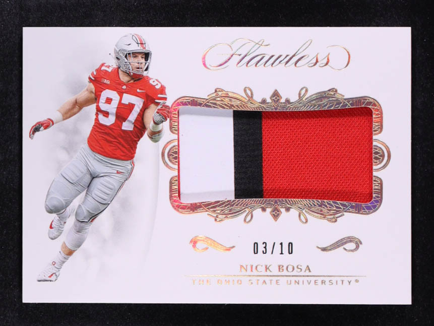 Nick Bosa 2019 Panini Flawless Collegiate Rookie Patches Gold #40 #3/10 RC