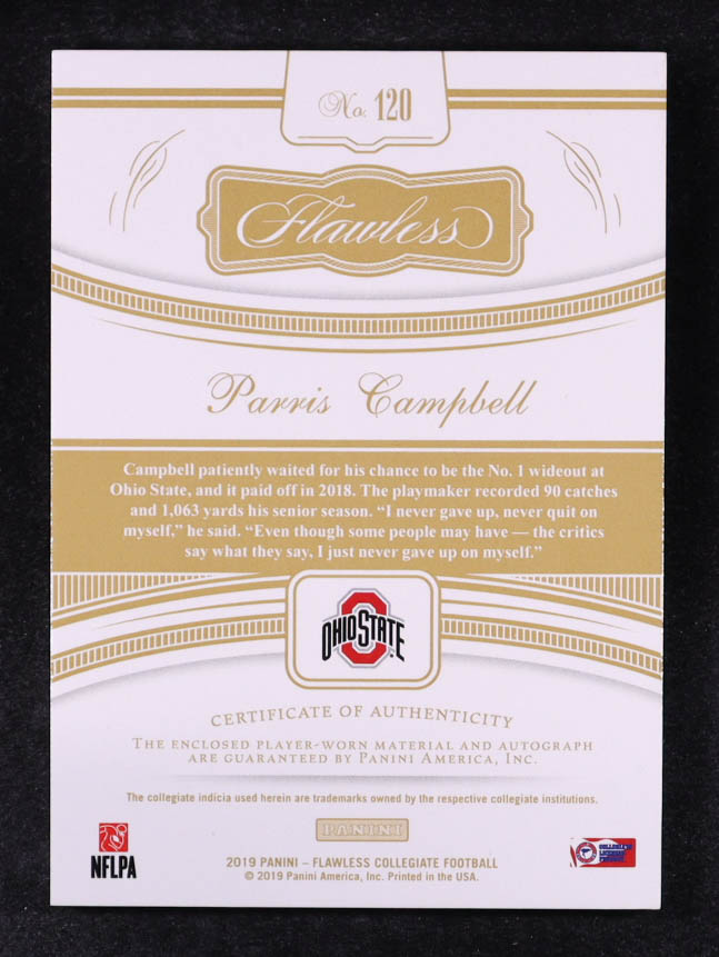 Parris Campbell 2019 Panini Flawless Collegiate Rookie Patch Autographs Ruby #120 #7/20 RC