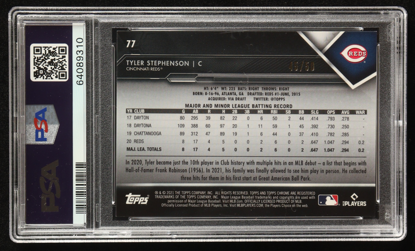 Tyler Stephenson 2021 Topps Chrome Black Gold Refractors #77 #45/50 RC (PSA 9)