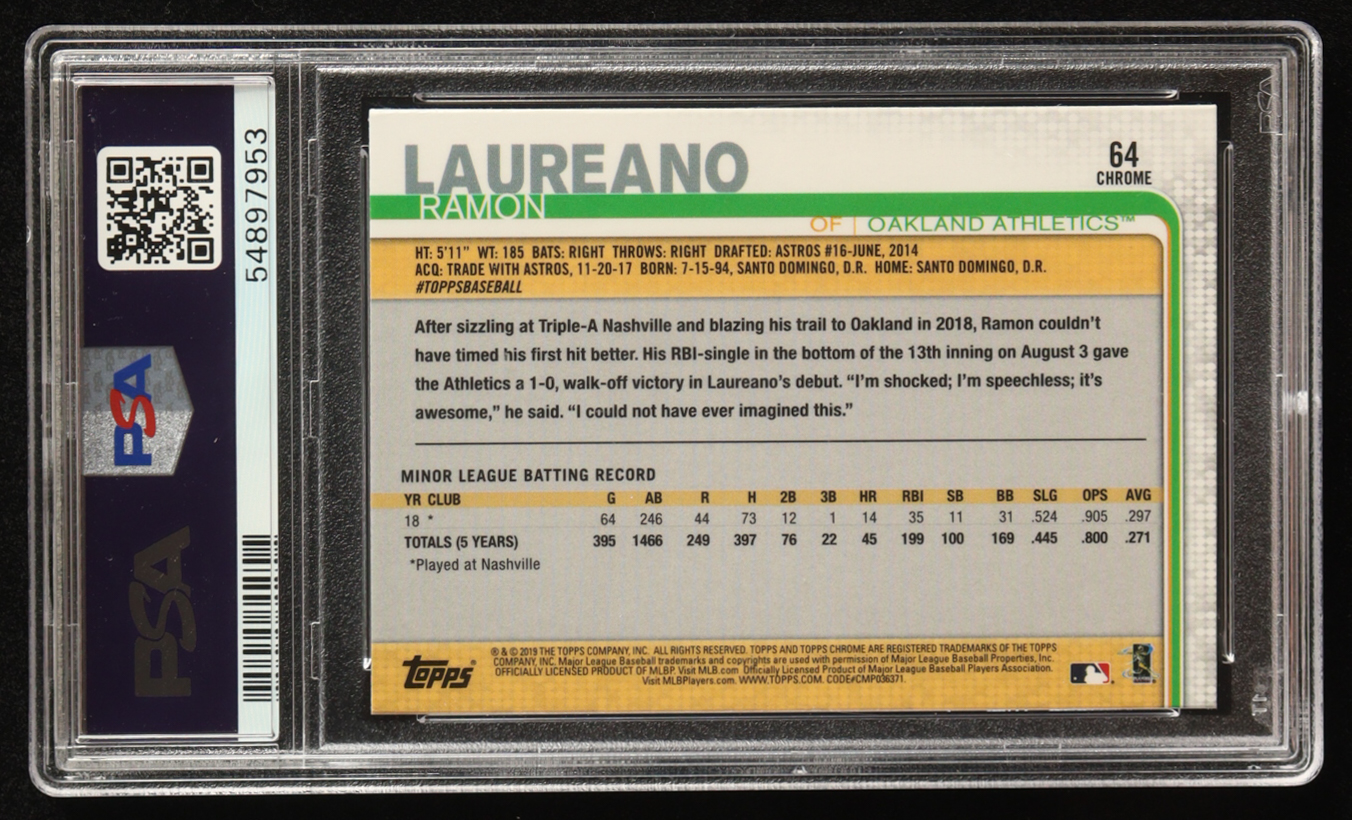 Ramon Laureano 2019 Topps Chrome Sapphire #64 RC (PSA 10)