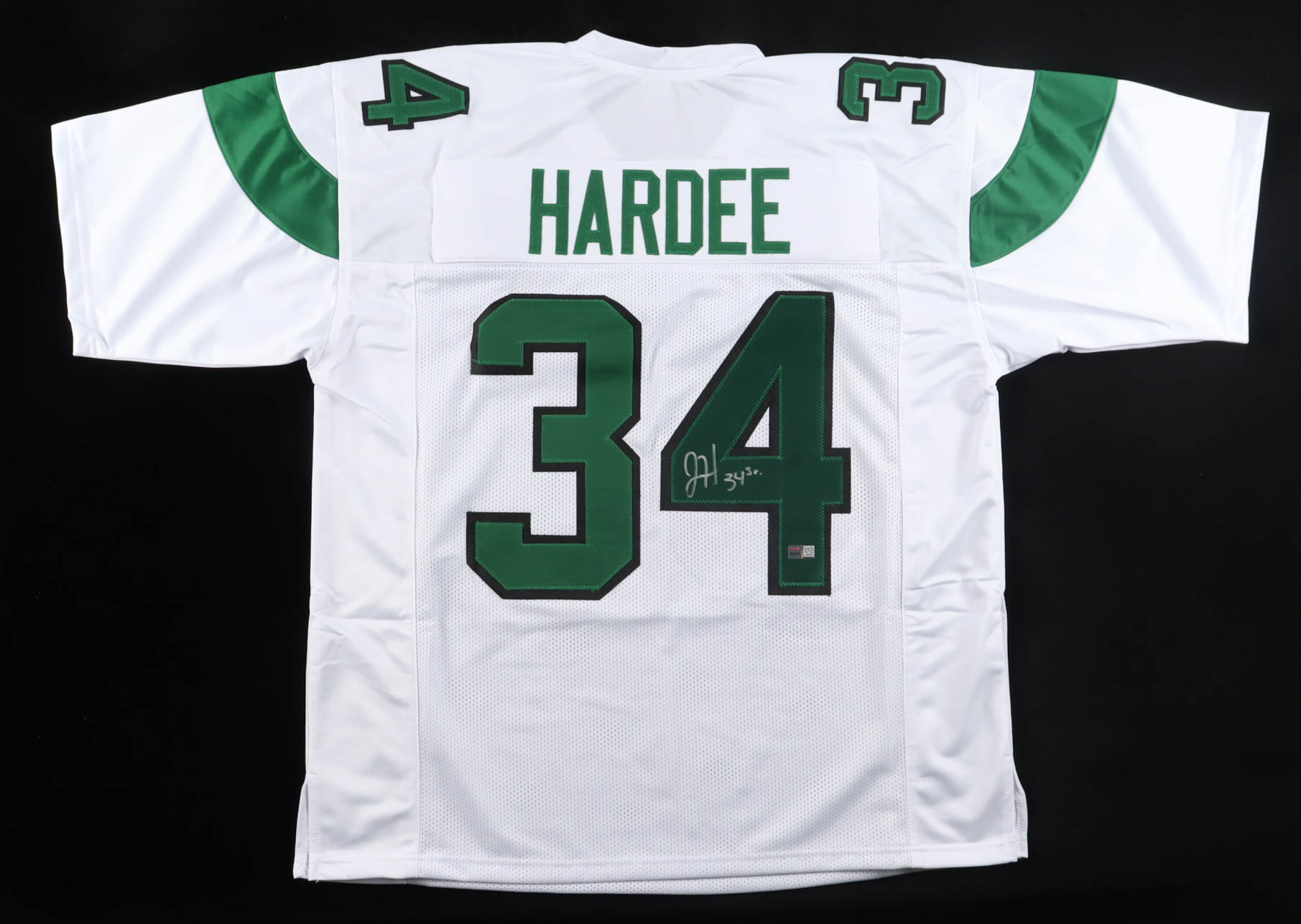 Custom jersey with everything sewn on, size XL. Hand-signed by Justin Hardee.