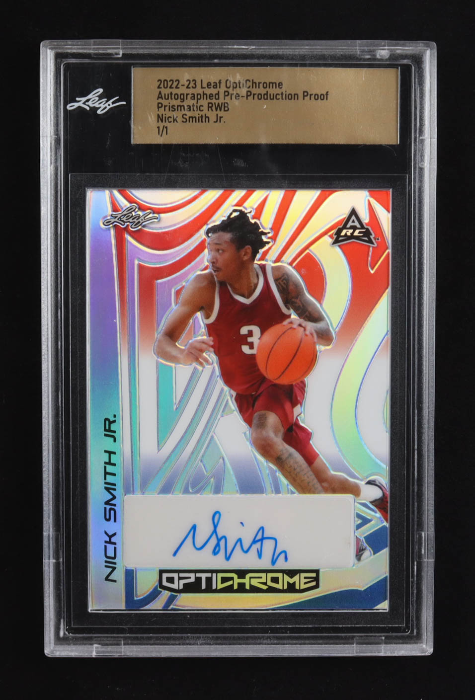 Nick Smith Jr. 2022-23 Leaf OptiChrome Prismatic Red White Bluck Autographed Pre-Production Proof #NNO #1/1