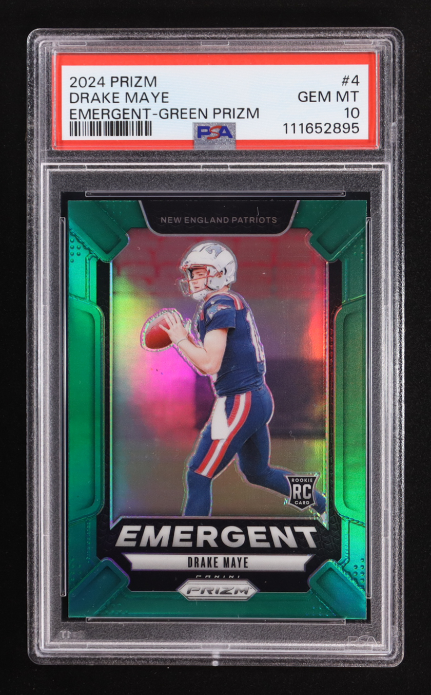 Drake Maye 2024 Panini Prizm Emergent Prizms Green #4 RC (PSA 10)