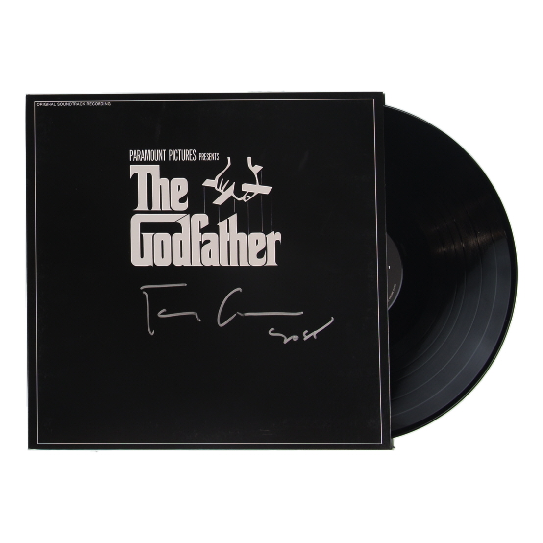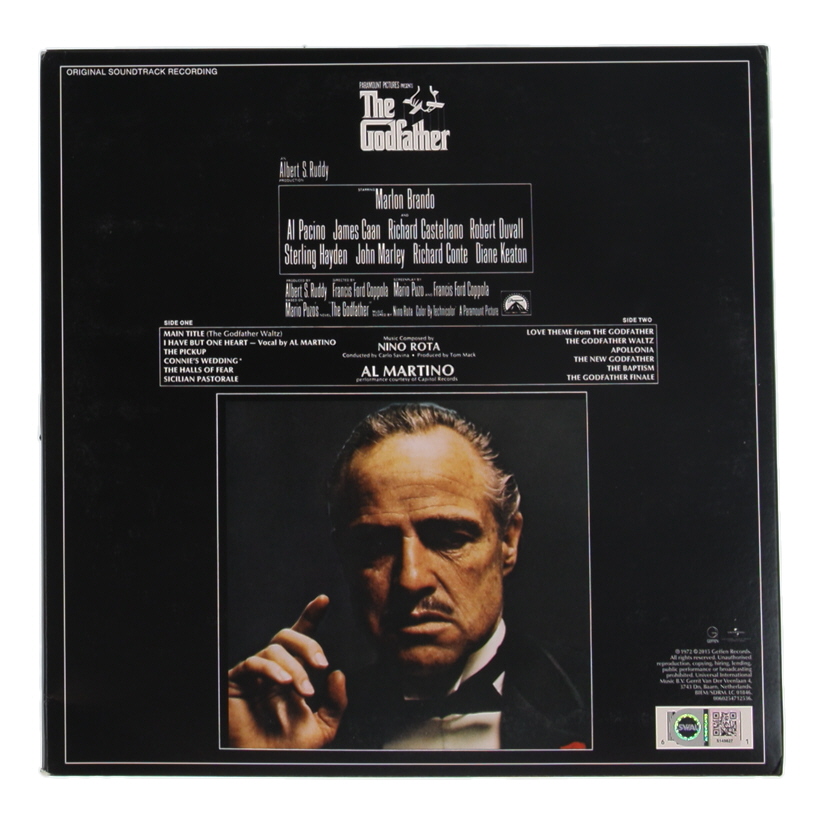 "The Godfather" vinyl record album has been hand-signed and inscribed on the cover by Francis Ford Coppola. Record is included as shown.