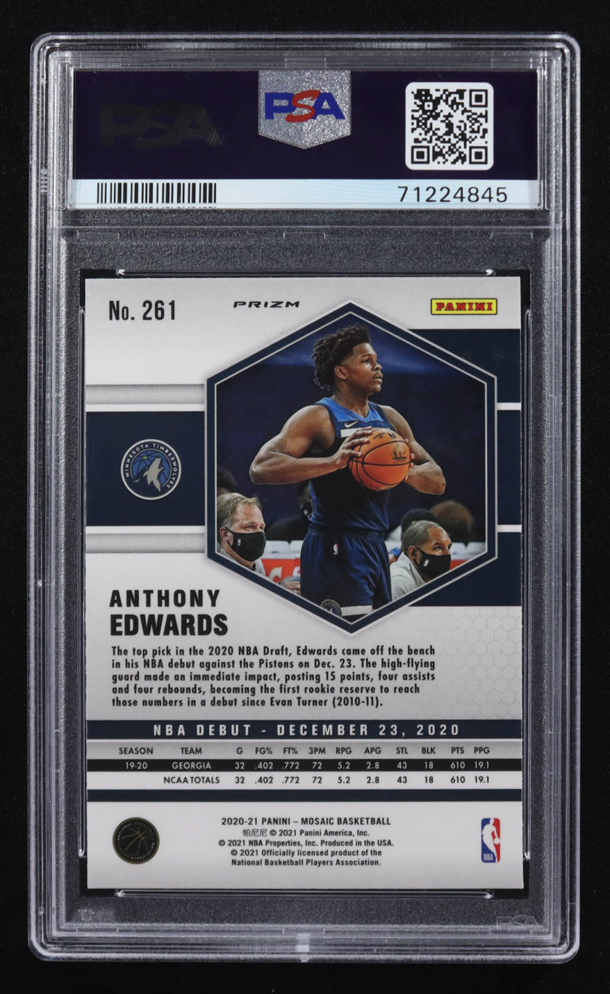 Anthony Edwards 2020-21 Panini Mosaic Reactive Yellow NBA Debut #261 RC (PSA 9)