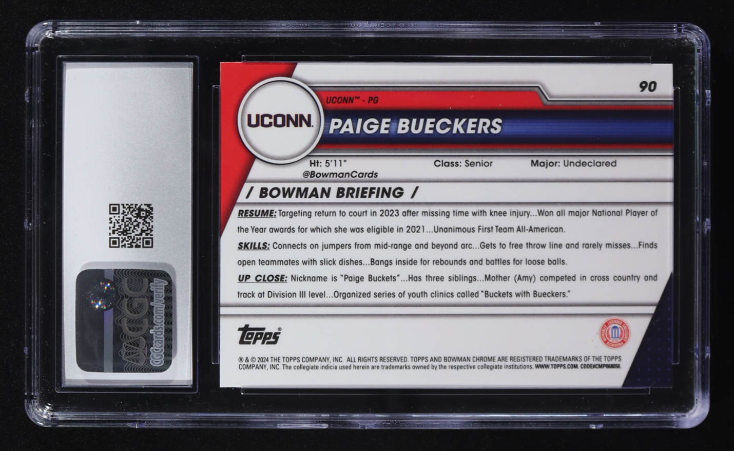 Paige Bueckers 2023-24 Bowman University Chrome #90 RC (CGC 10)