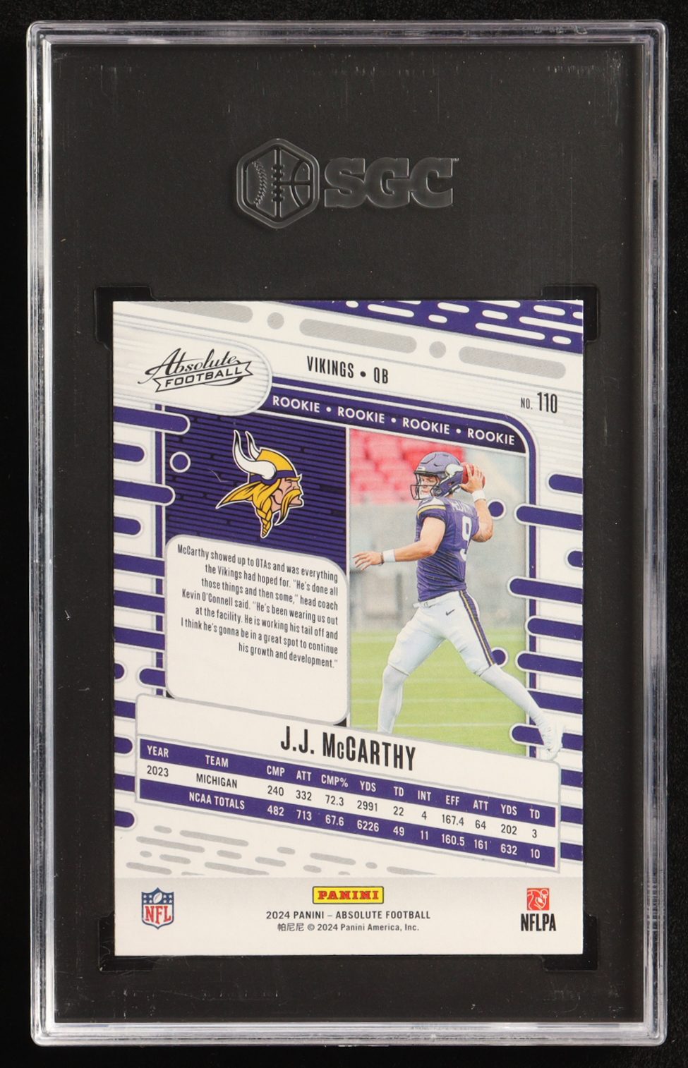 J.J McCarthy 2024 Absolute Red and Blue #110 RC (SGC 10)