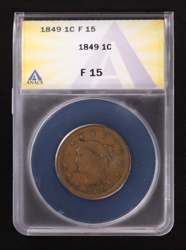 1849 Braided Hair Large 1C Cent (ANACS F15)