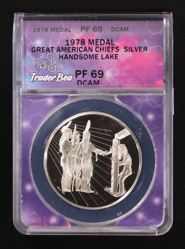 1978 Great American Chiefs, Handsome Lake - 1oz .925 Proof Silver Medal (ANACS PF69 DCAM)