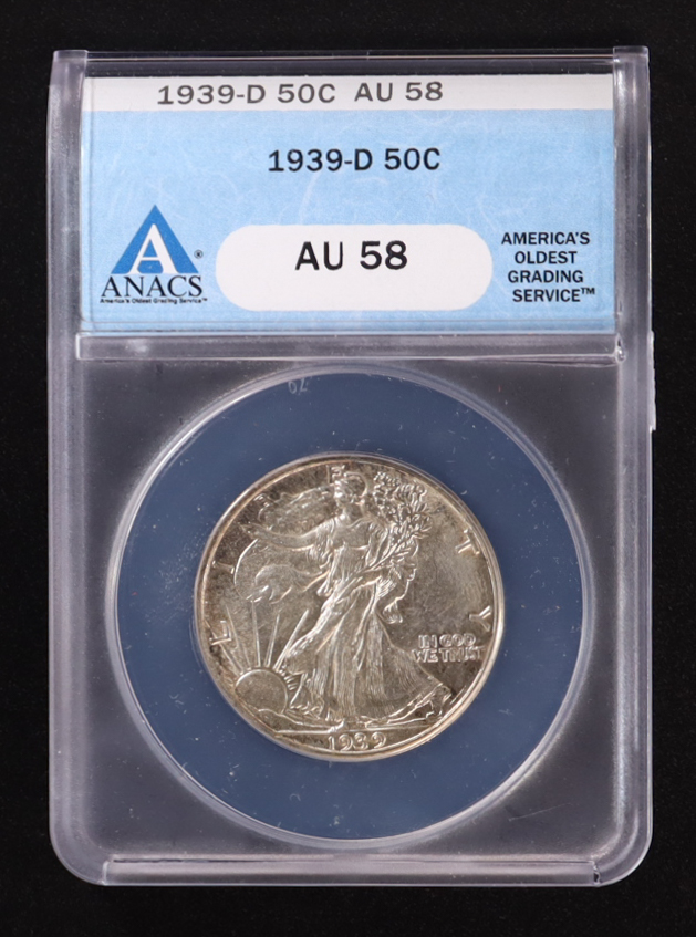 1939-D Walking Liberty Silver 50C Half Dollar (ANACS AU58)