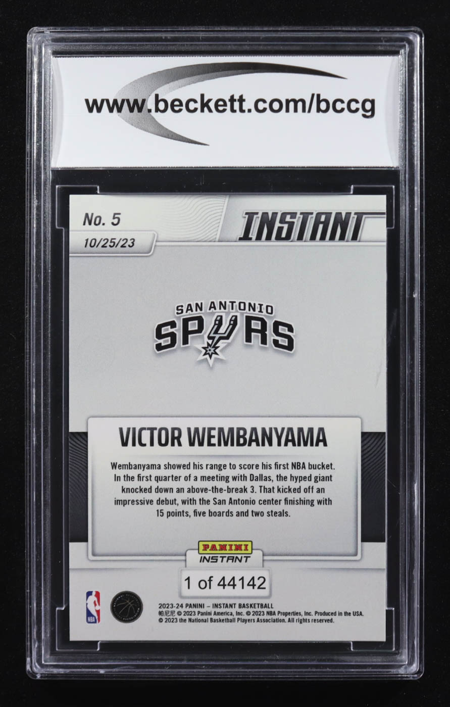 Victor Wembanyama 2023-24 Panini Instant #5 RC #1/44142 (BCCG 9)