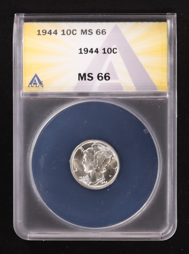 1944 Mercury Silver 10C Dime (ANACS MS66)
