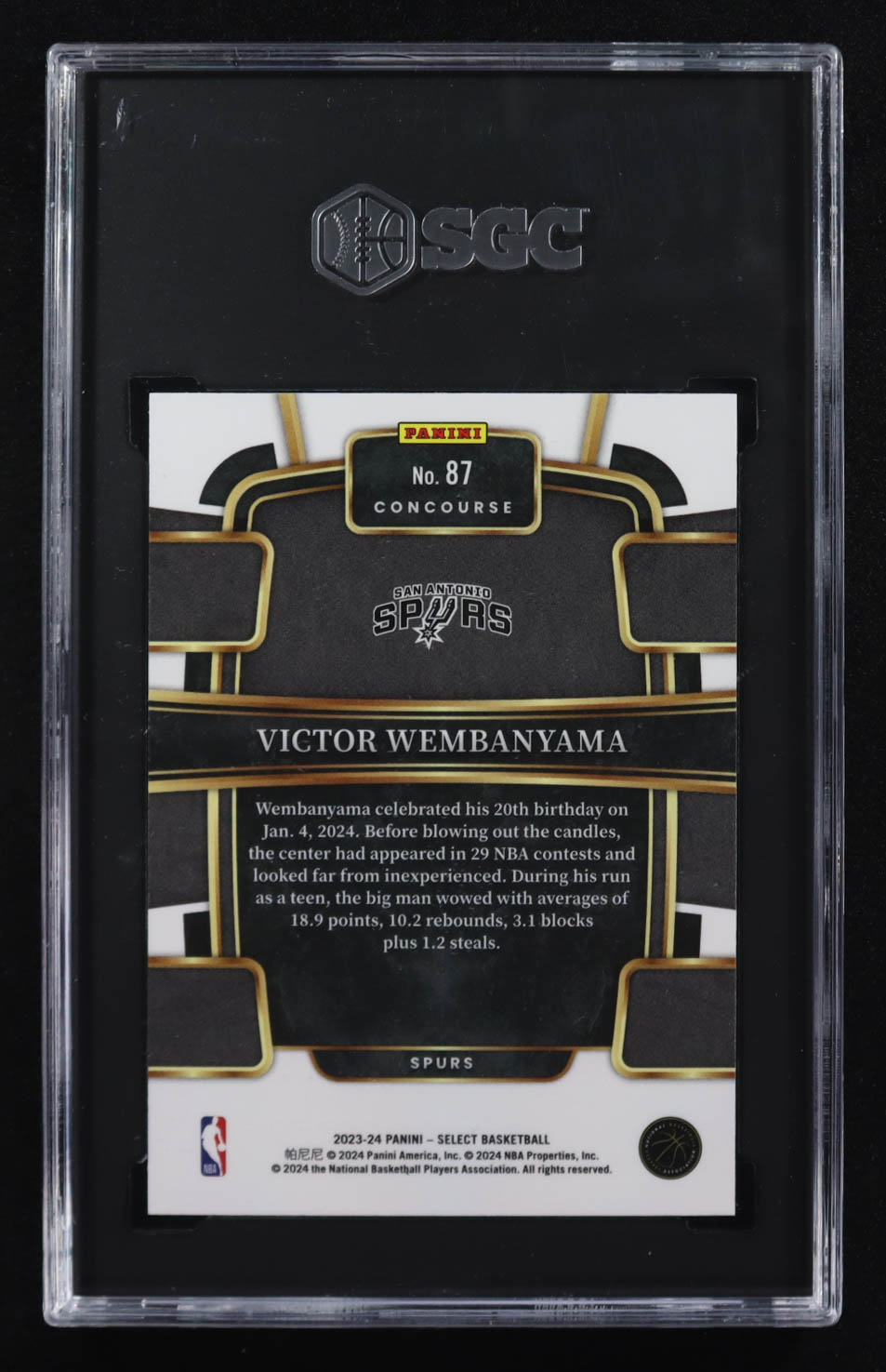 Victor Wembanyama 2023-24 Panini Select #87 RC (SGC 9.5)