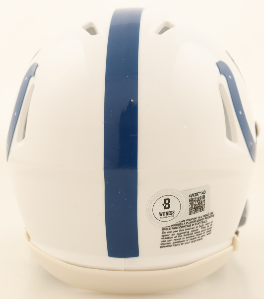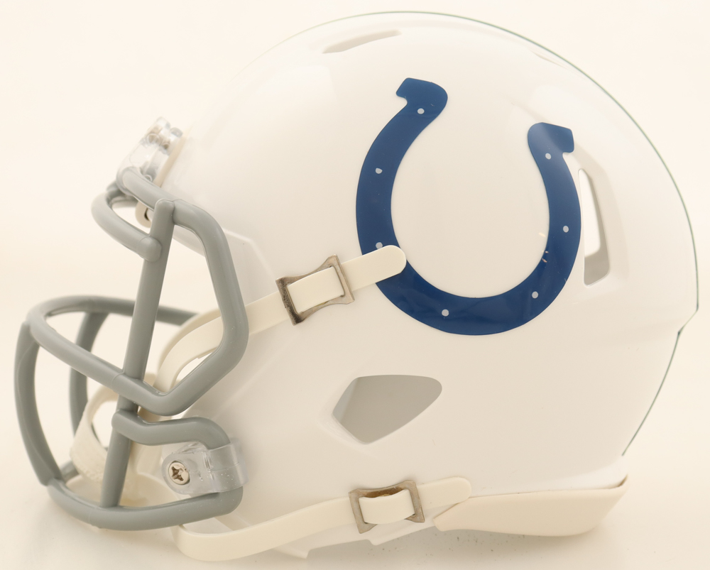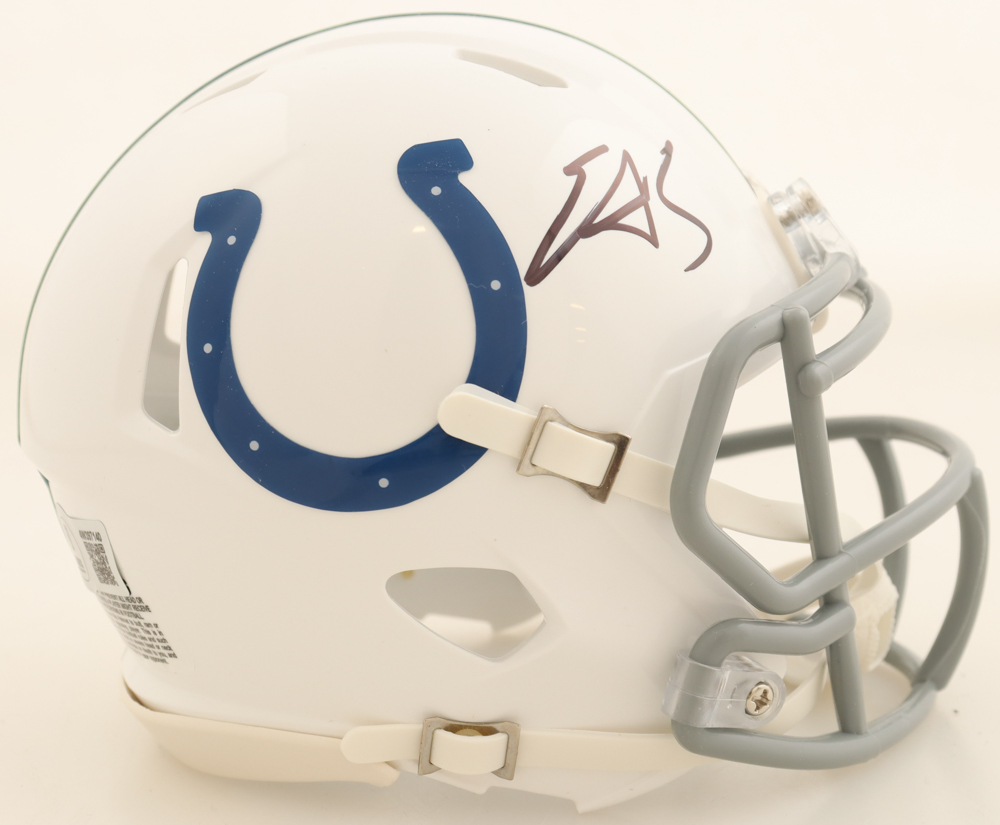 Riddell Indianapolis Colts Speed Mini Helmet. Hand-signed by Edgerrin James (HOF). Please see photos for details regarding the condition of the item.