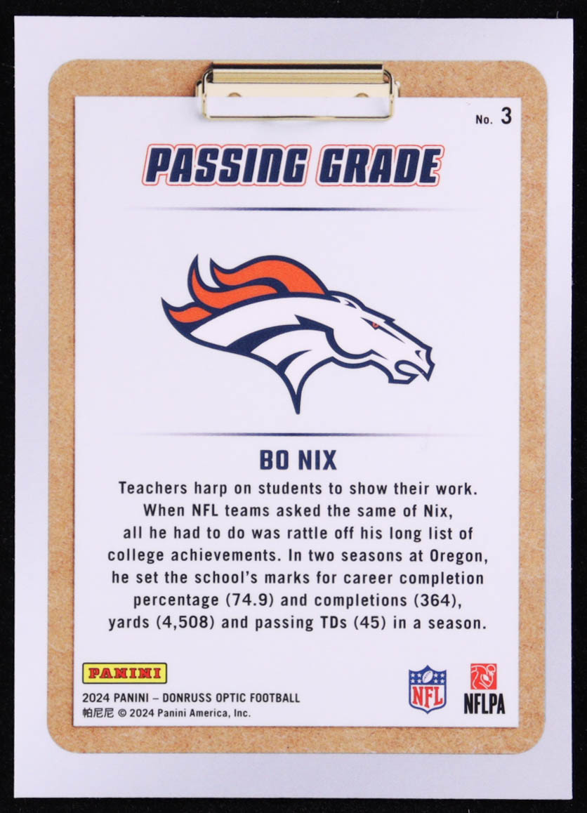 Bo Nix 2024 Donruss Optic Passing Grade #3 RC