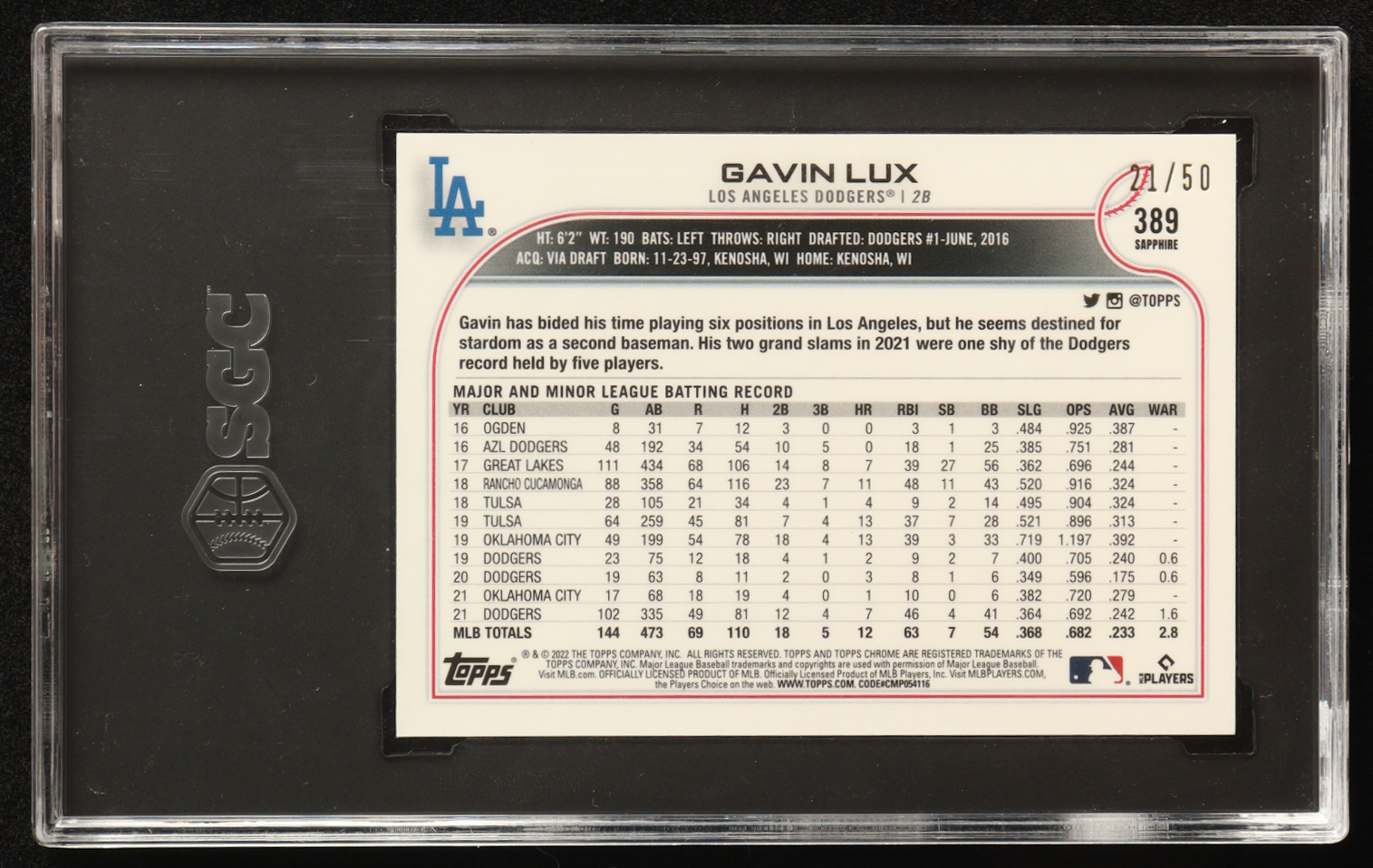 Gavin Lux 2022 Topps Chrome Sapphire Gold Refractors #389 #21/50 (SGC 10)