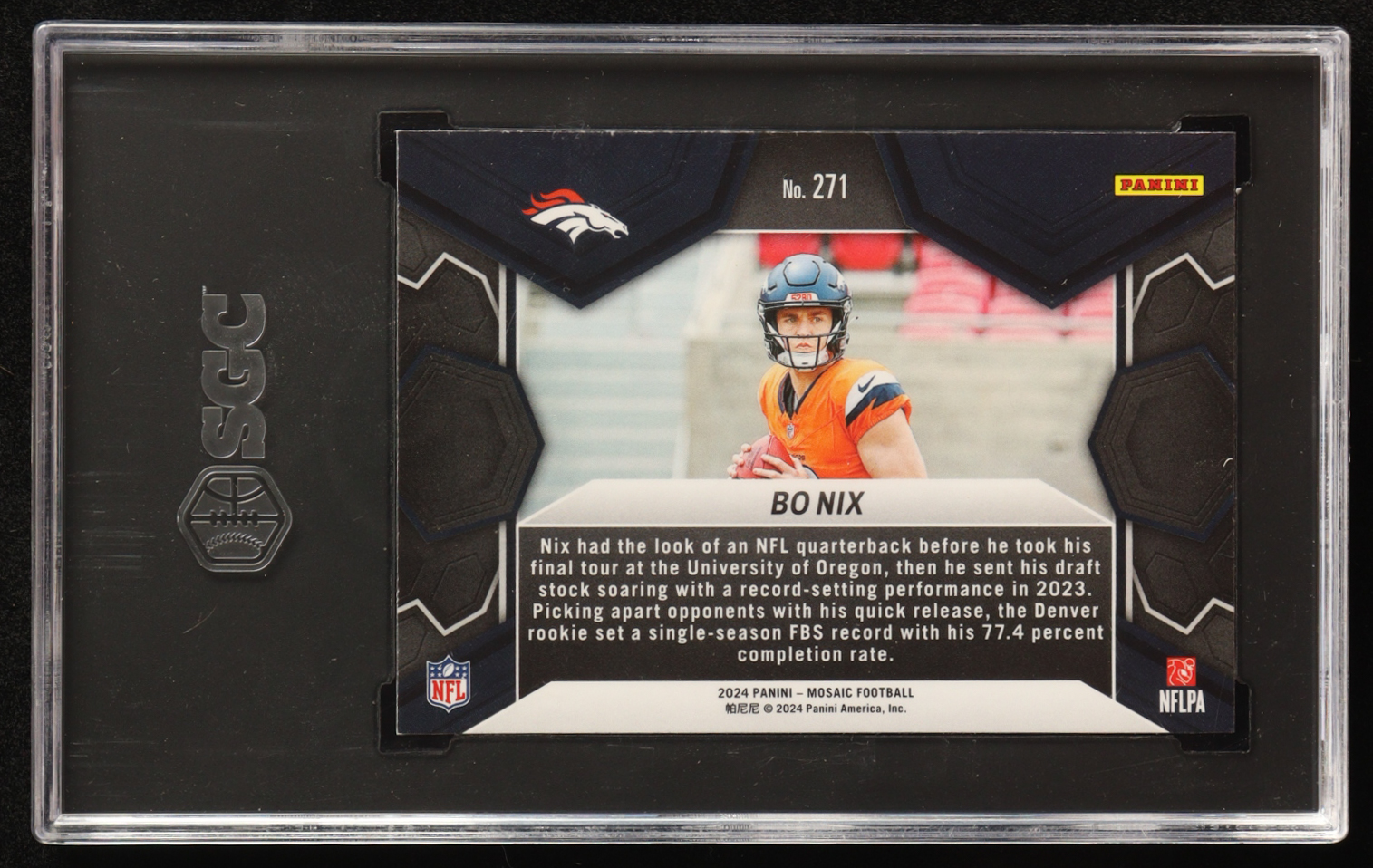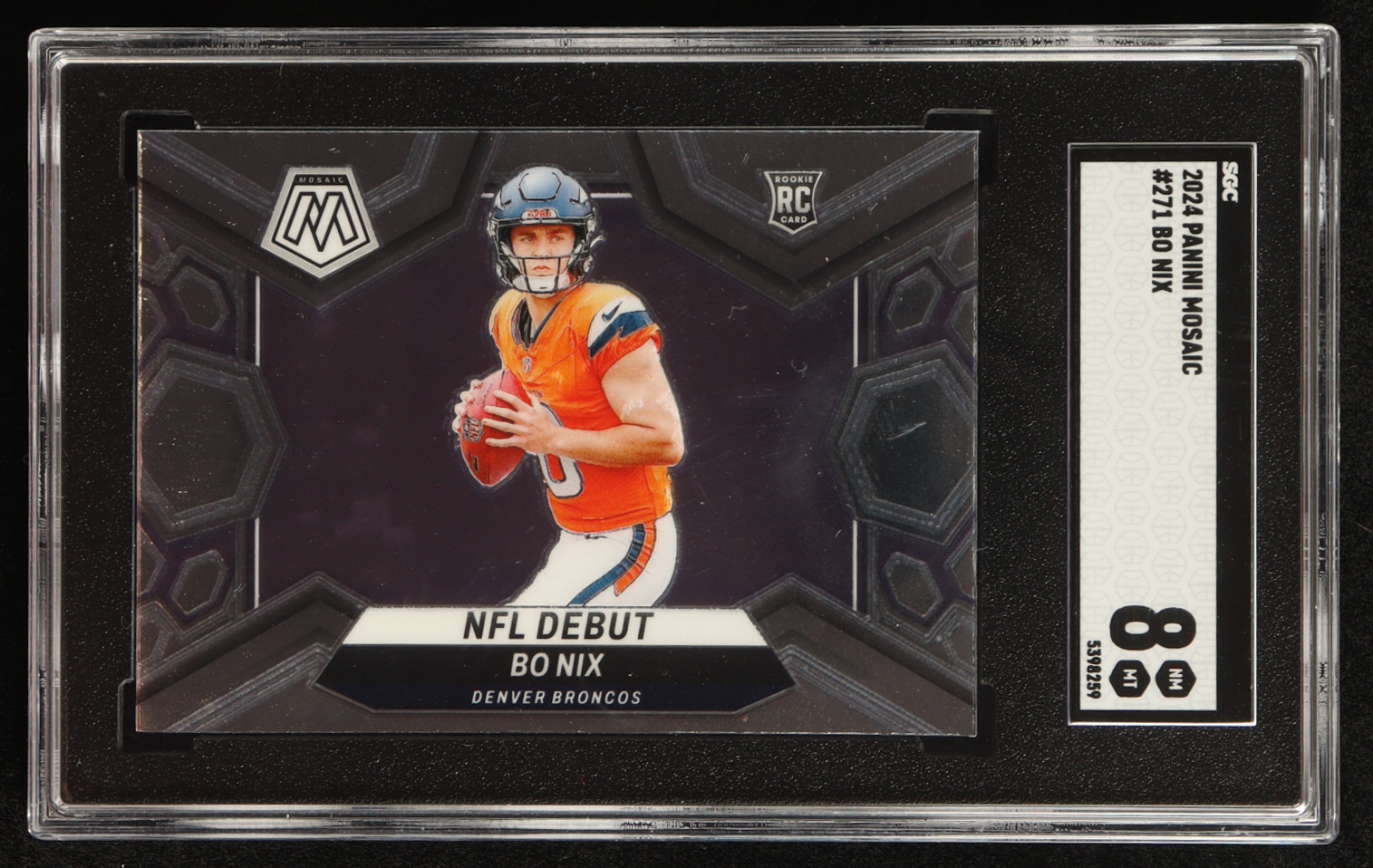 Bo Nix 2024 Panini Mosaic #271 DEB RC (SGC 8)