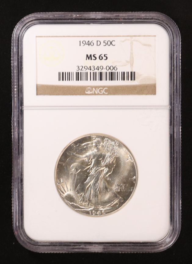 1946-D Walking Liberty Silver 50C Half Dollar (NGC MS65)