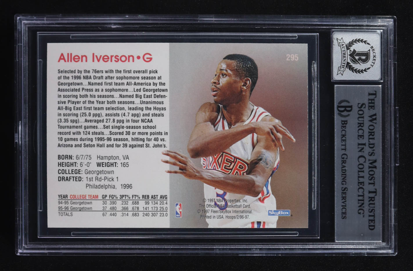 Allen Iverson Signed 1996-97 NBA Hoops #295 RC (BGS | Autograph Graded BGS 10)
