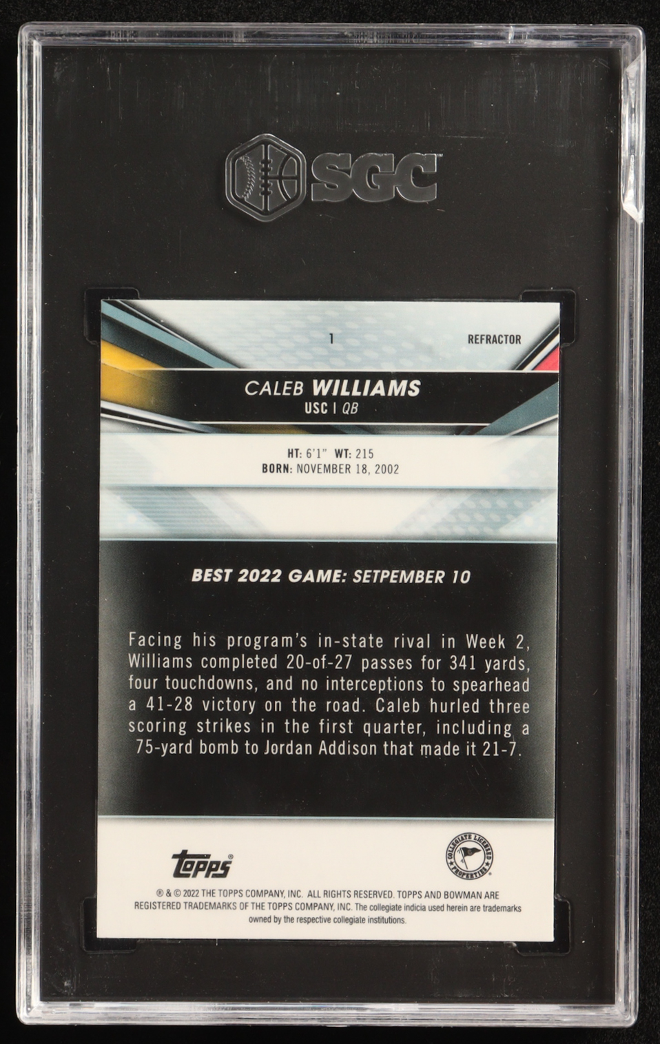 Caleb Williams 2022 Bowman's Best University Refractors #1 (SGC 10)