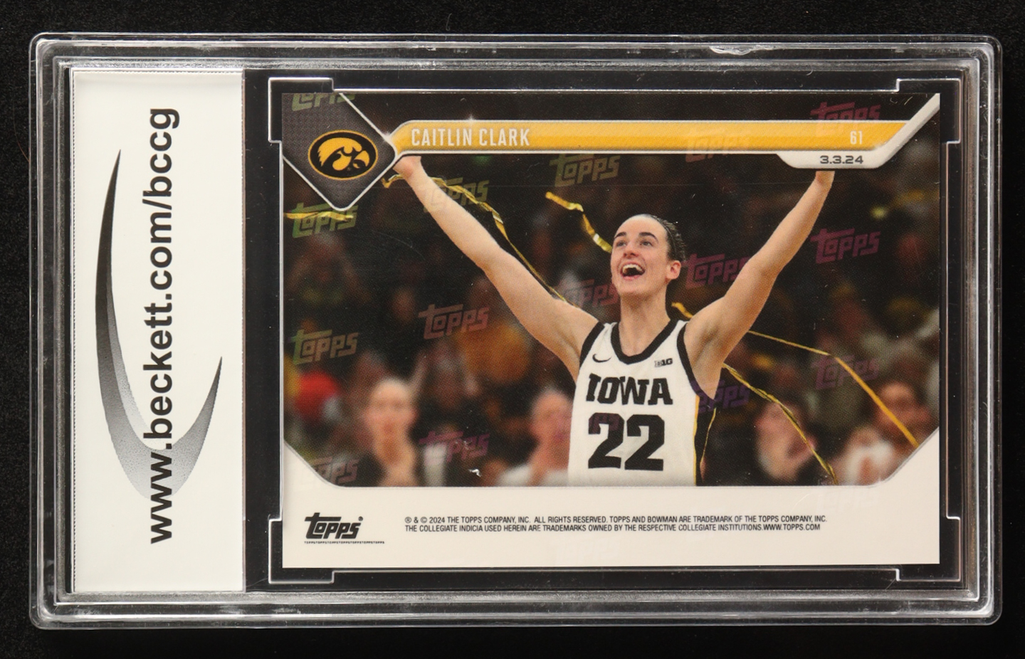 Card has been graded (BCCG) 10. Please see photos for details regarding the condition of the card (Iowa Hawkeyes).