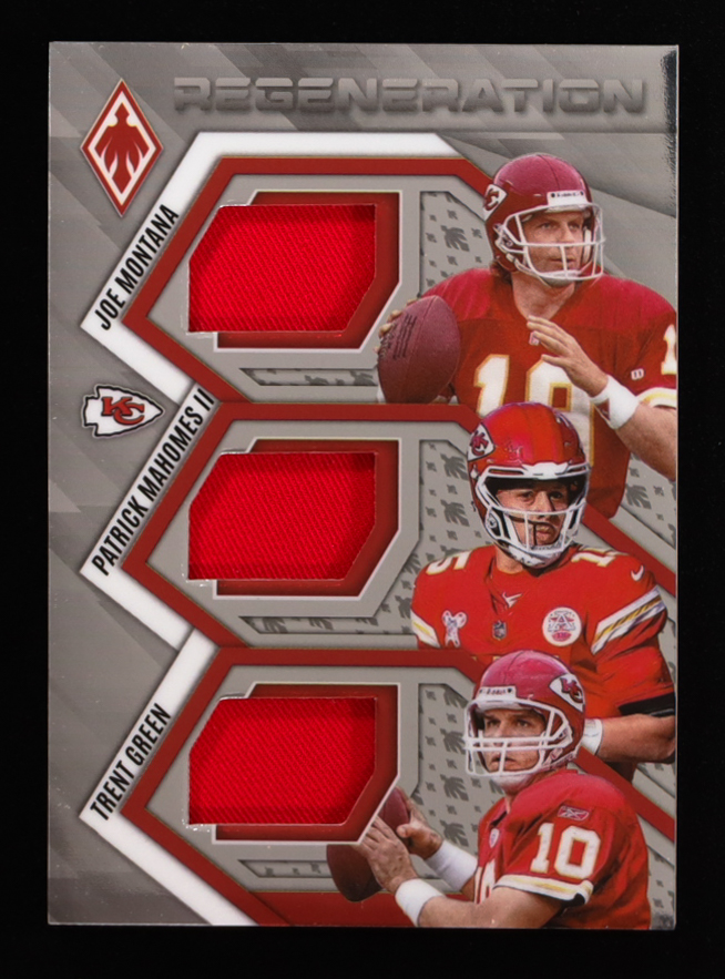Joe Montana / Patrick Mahomes II / Trent Green 2025 Panini Phoenix Regeneration Jerseys #9 #261/299