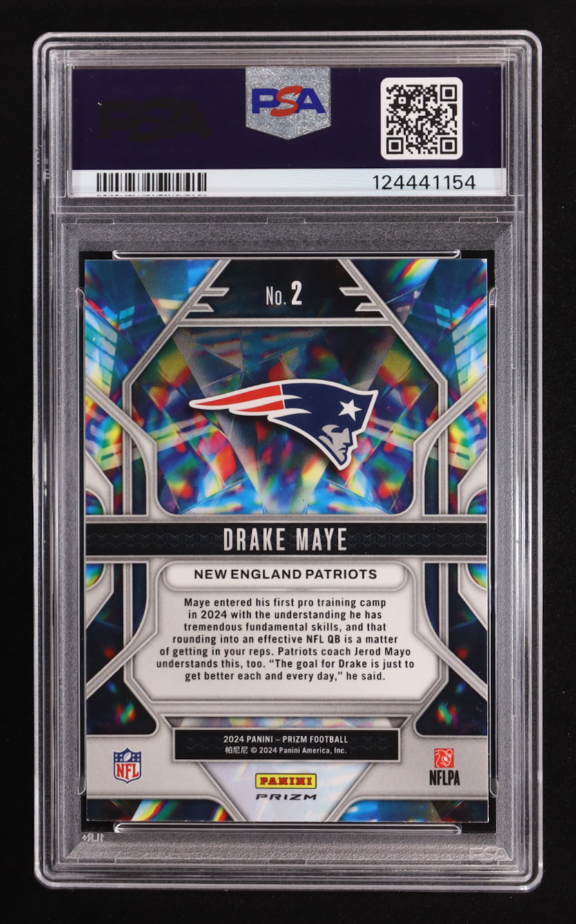 Drake Maye 2024 Panini Prizm Prizmatic Prizms Green #2 RC (PSA 9)