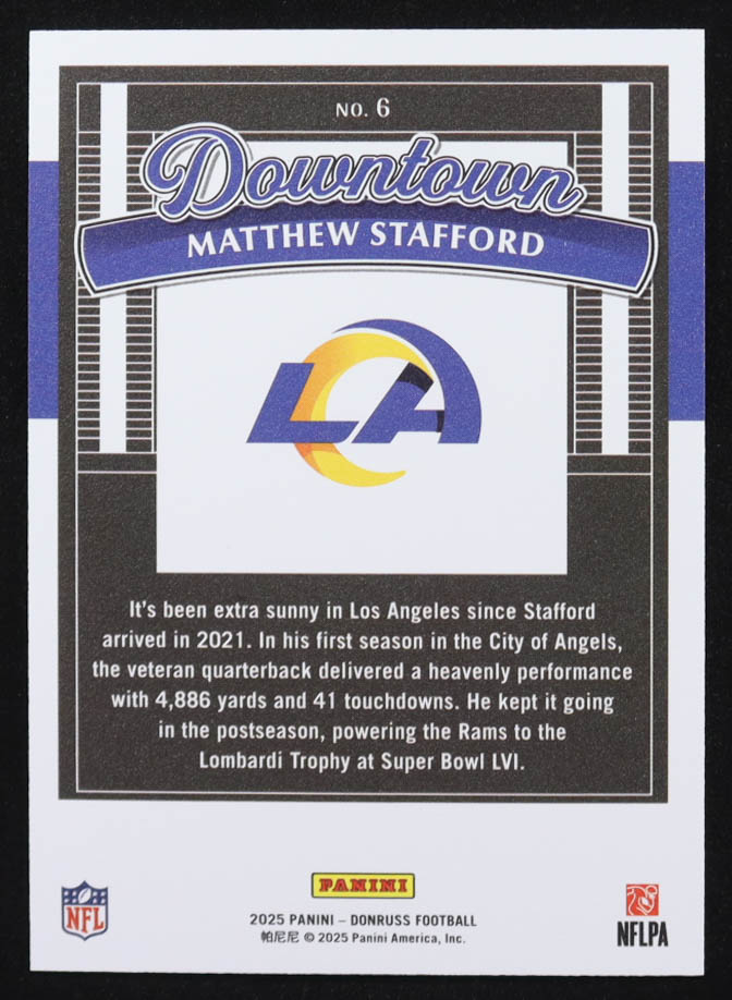 Matthew Stafford 2025 Donruss Downtown #6