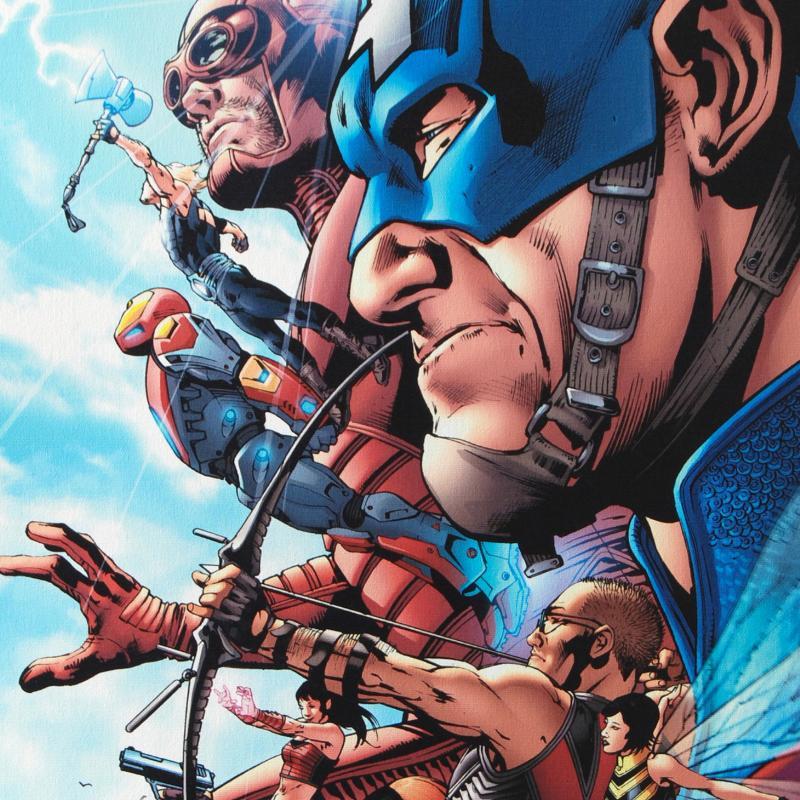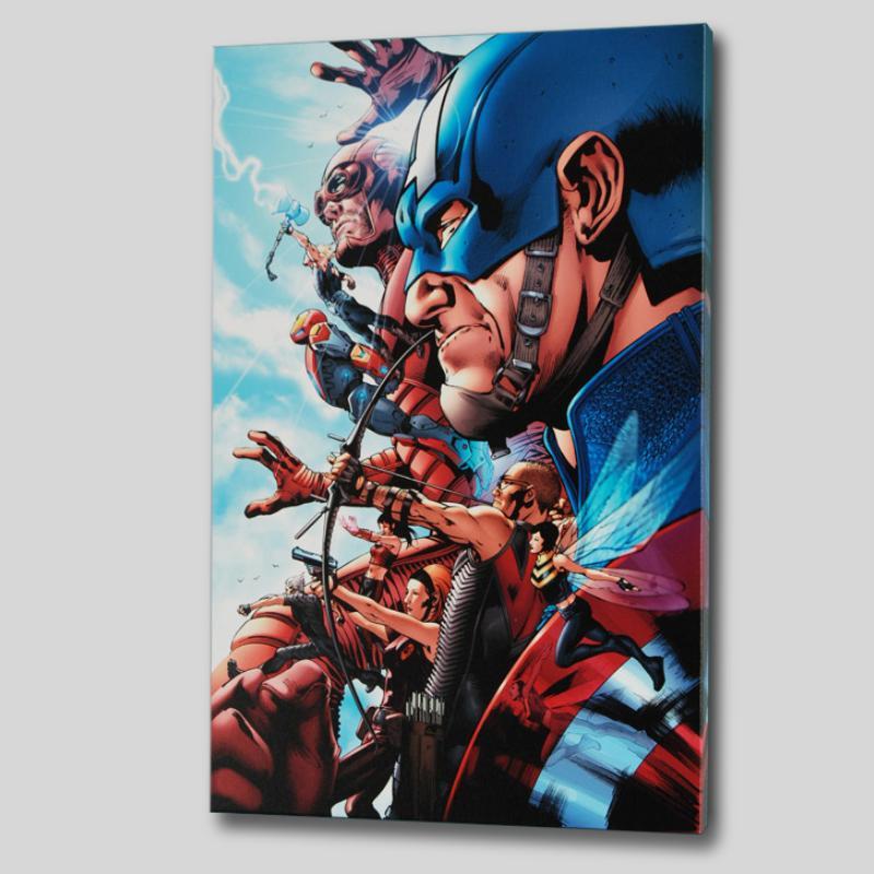 A piece of comic book history, this limited edition, from original art by Bruce Timm, depicts classic Marvel characters. Starting with a thriving career in animation, Bruce Timm has seamlessly transition into his first love, comic book art. Timm has since done work for DC's Batman and Marvel's Avengers. "Avengers #1" is a limited edition numbered giclee on stretched canvas by Bruce Timm presented by Marvel Comics. This piece comes gallery wrapped. Measure approx. 18" x 27" (image); 1.5" (depth).