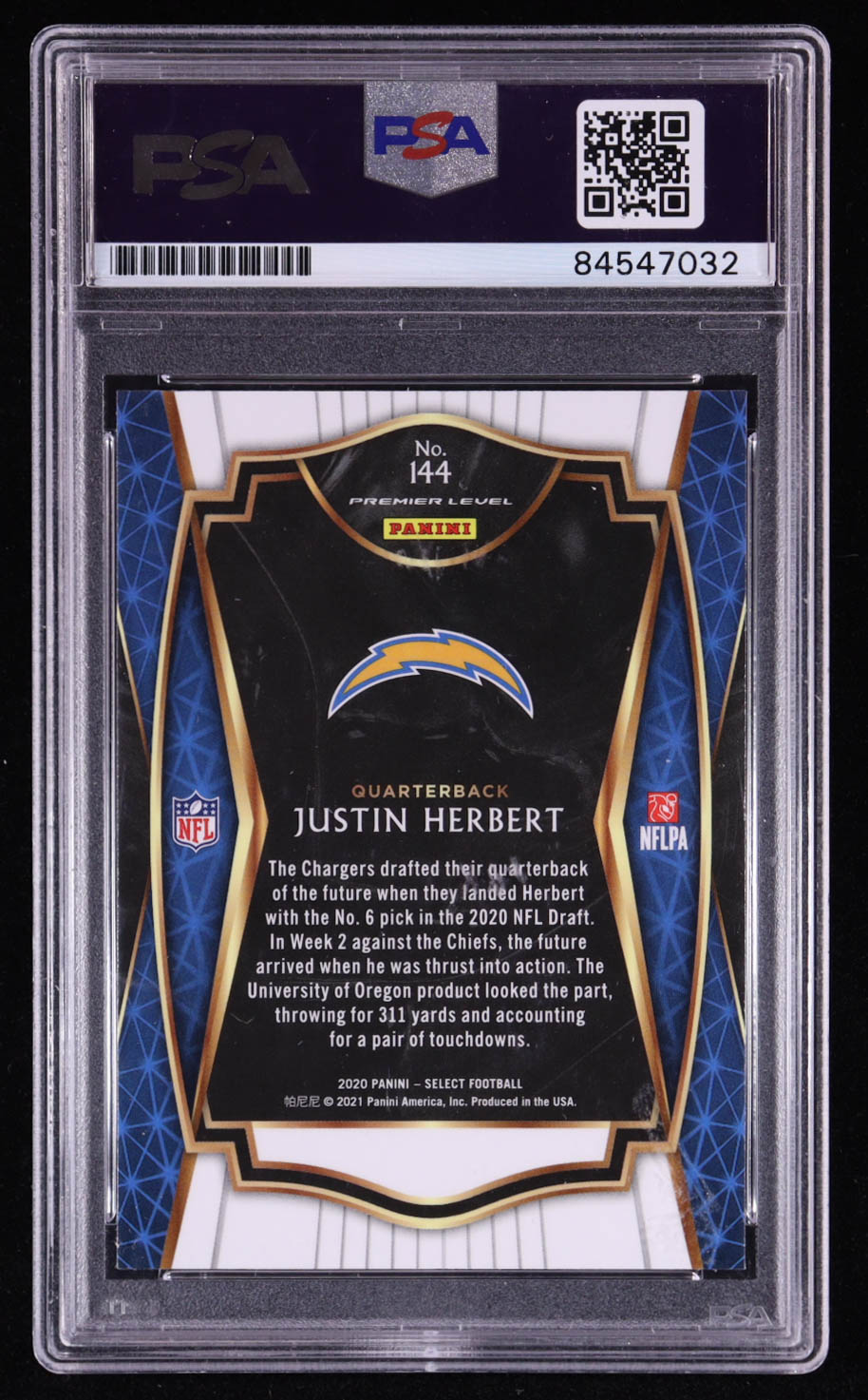 Justin Herbert Signed 2020 Select #144 RC (PSA)
