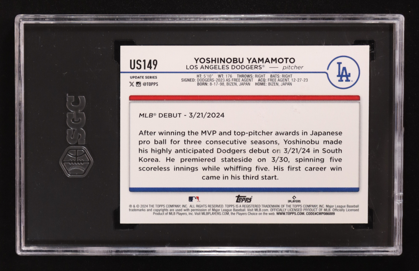 Yoshinobu Yamamoto 2024 Topps Update #US149 RC (SGC 10)