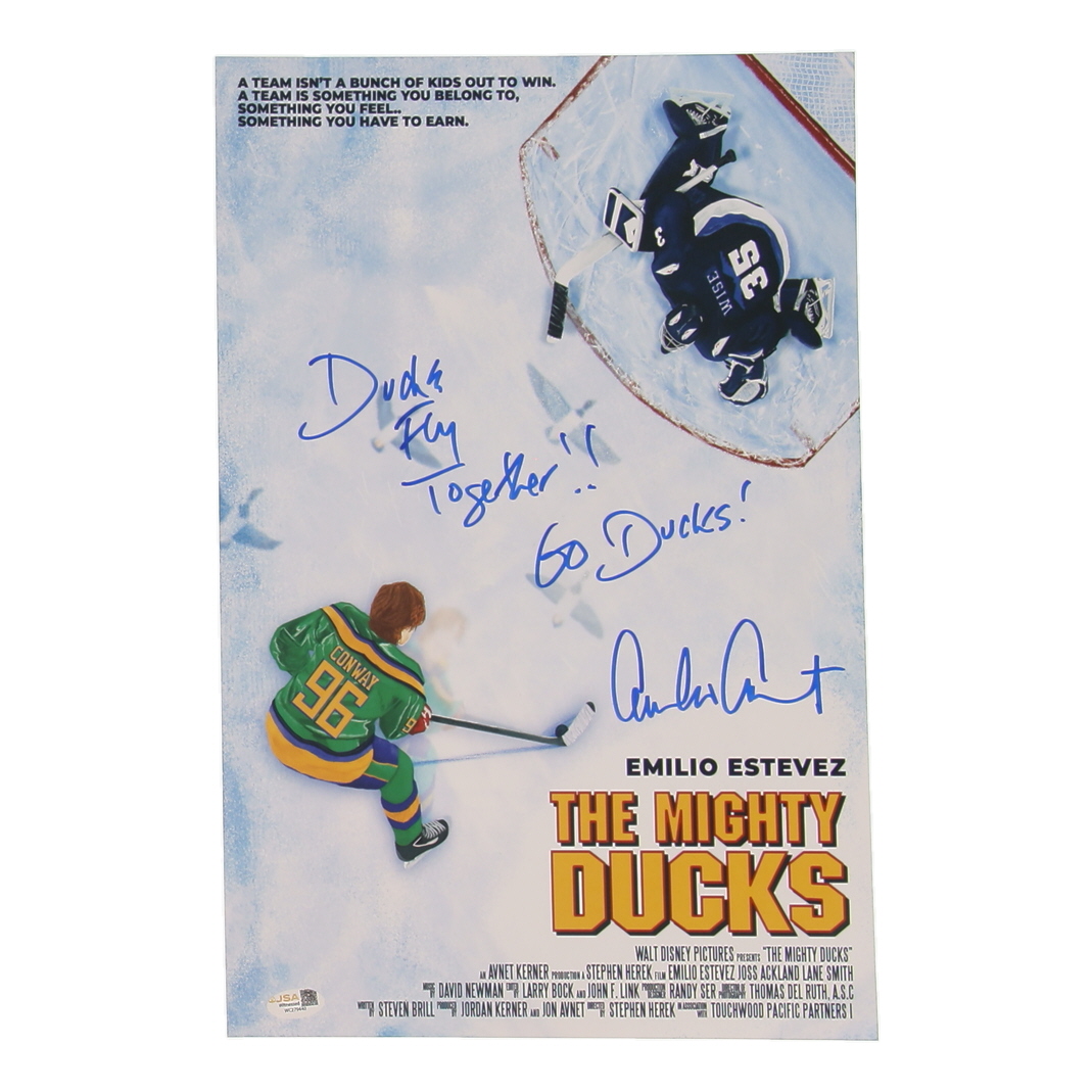 Emilio Estevez Signed "The Mighty Ducks" 11x17 Poster Inscribed "Ducks Fly Together!! Go Ducks!" (JSA)