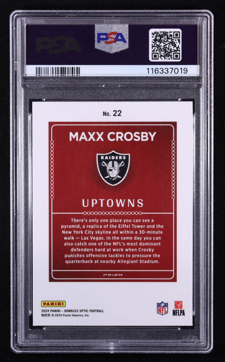 Maxx Crosby 2024 Donruss Optic Uptowns #22 (PSA 9)