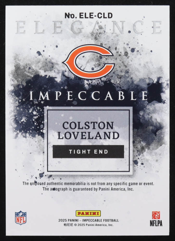 Colston Loveland 2025 Panini Impeccable Elegance Rookie Helmet and Cleat Autograph #ELECLD #3/5 RC