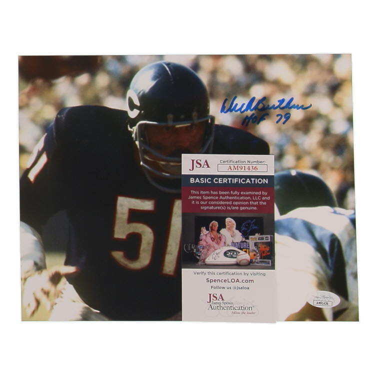 Dick Butkus Signed Bears 8x10 Photo Inscribed "HOF 79" (JSA)