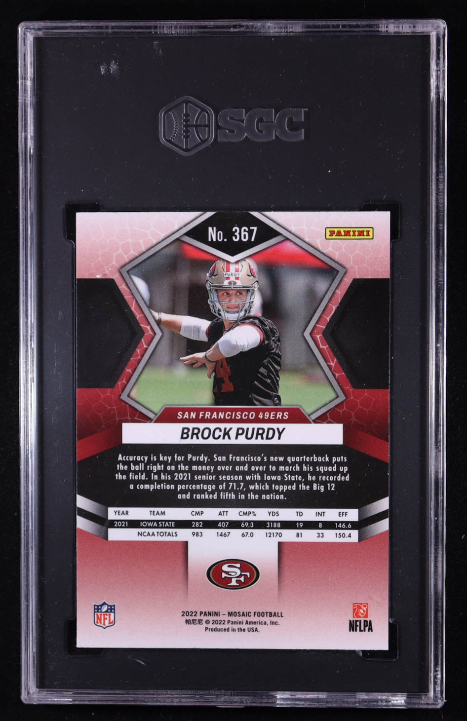 Brock Purdy 2022 Panini Mosaic #367 RC (SGC 9)