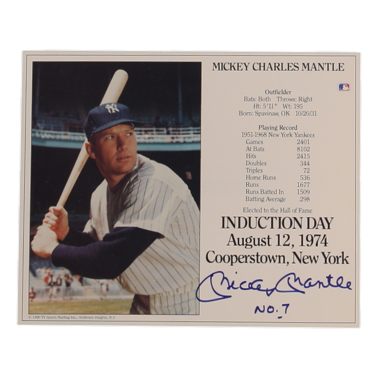 Photo measures 8" x 10" in size and has been hand-signed and inscribed by Mickey Mantle (New York Yankees, HOF, D. 1995).