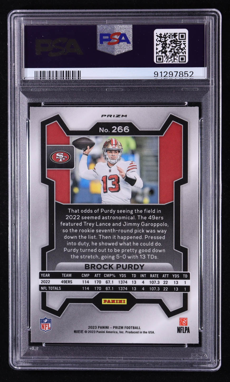 Brock Purdy 2023 Panini Prizm Prizms Silver #266 (PSA 9)