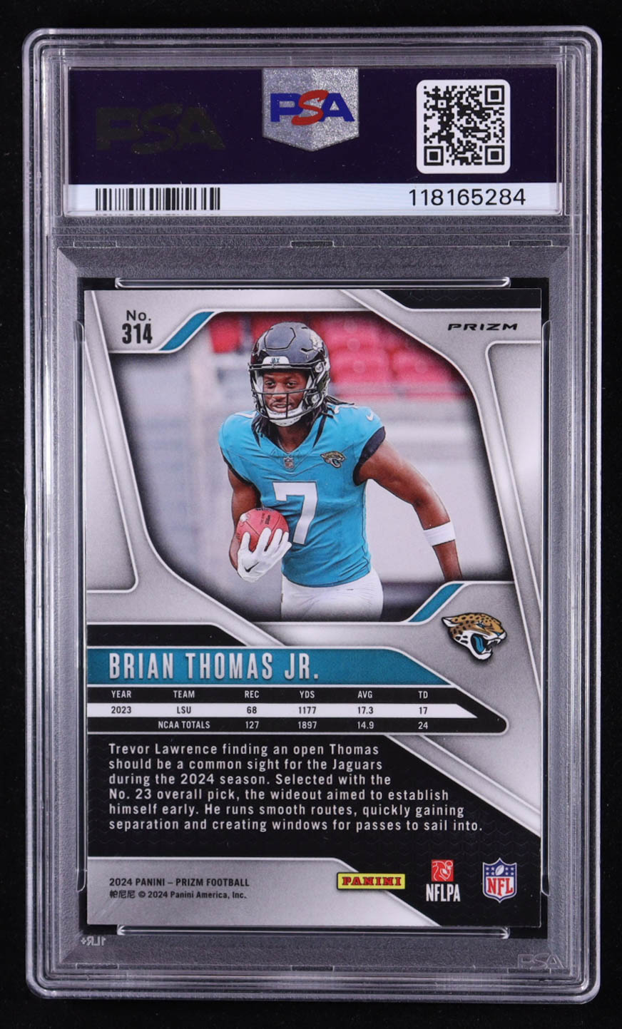 Brian Thomas Jr. 2024 Panini Prizm Prizms Lazer #314 RC (PSA 9)