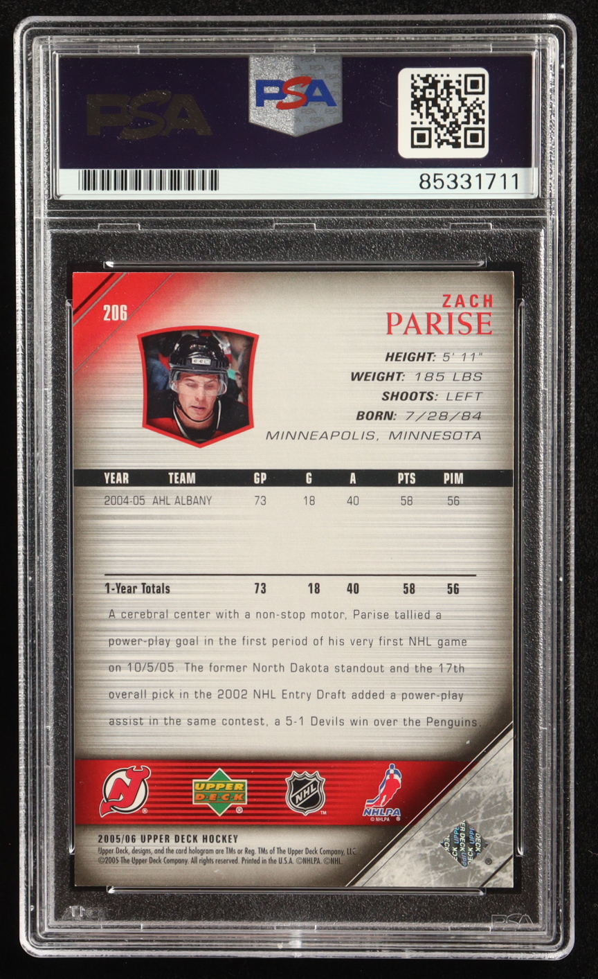 Zach Parise Signed 2005 Upper Deck Rookies #206 RC (PSA)