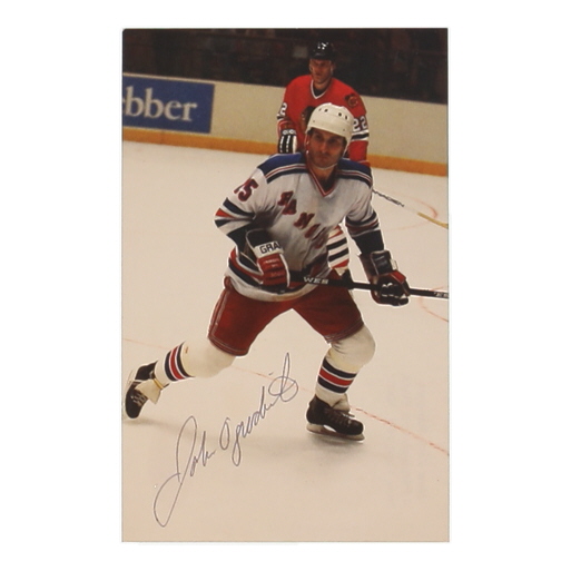 Postcard measures approximately 3.5" x 5.5" in size. Hand-signed by John Ogrodnick (New York Rangers). Please see photos for details regarding the condition of the item.