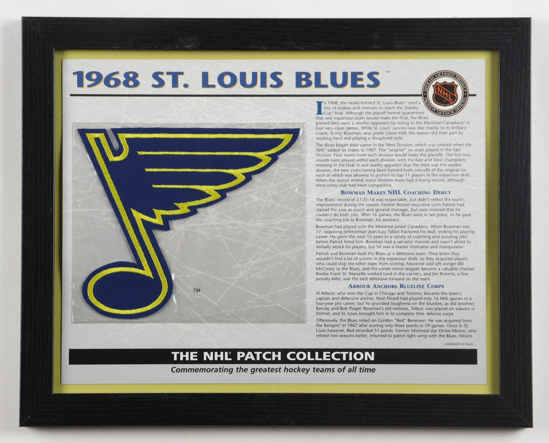 1968 St. Louis Blues Custom Framed Commemorative Patch Display