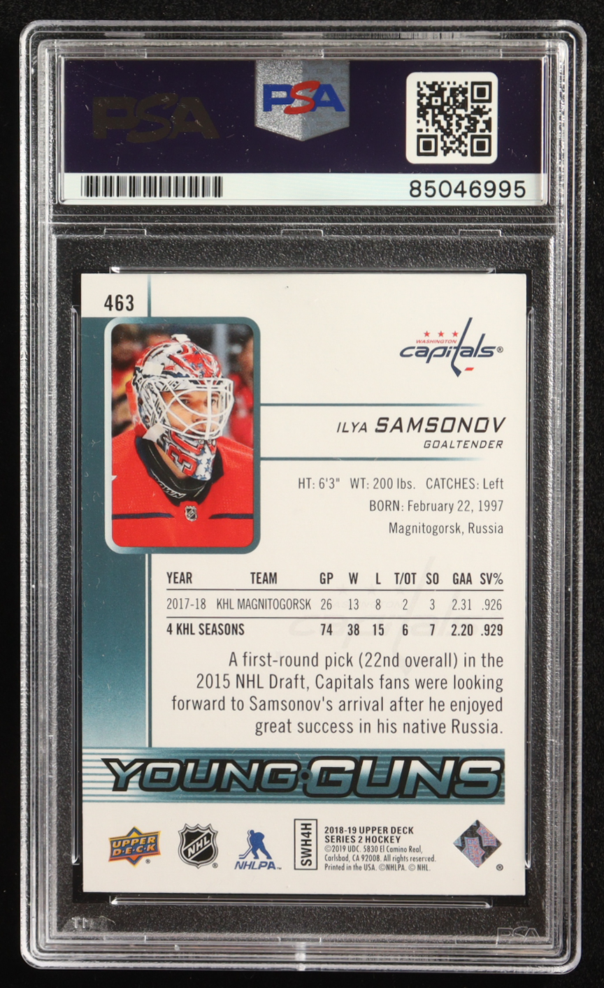 Ilya Samsonov Signed 2018-19 Upper Deck Series 2 Hockey Young Guns #463 RC (PSA)
